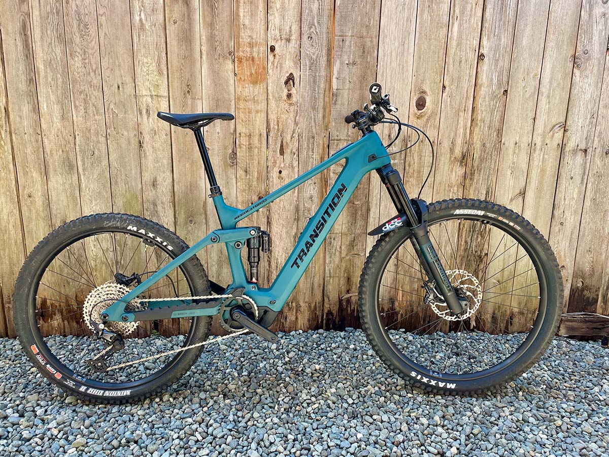 Transition’s full power all-mountain e-bike features a Bosch motor with 160mm of travel in the front and 150mm in the back.